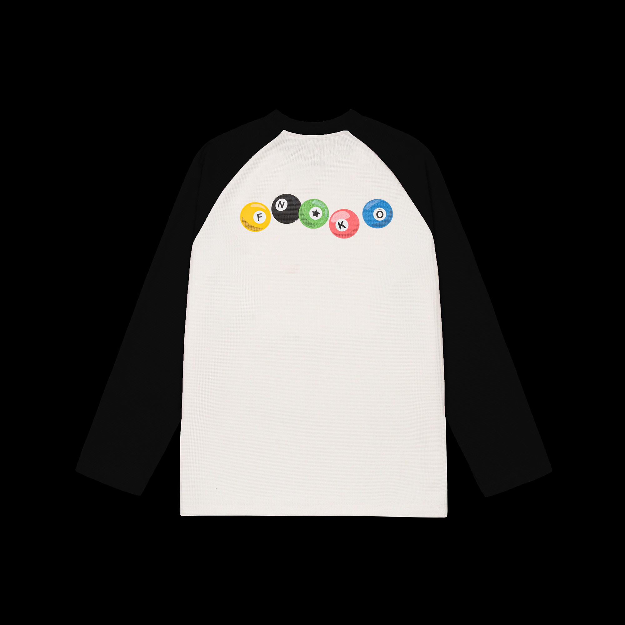 ÁO TAY DÀI RAGLAN FORM RELAXED ĐƯỢC LÀM TỪ CHẤT LIỆU COTTON WAFFLE-KNIT THOÁNG KHÍ. HOÀN THIỆN VỚI KỸ THUẬT NHUỘM PIGMENT STONEWASH TẠO HIỆU ỨNG MÀU SẮC TỰ NHIÊN NHƯ ĐÃ QUA SỬ DỤNG. THIẾT KẾ VỚI LOGO FEINICKÖ NHỎ Ở NGỰC VÀ HÌNH IN MẶT SAU LẤY CẢM HỨNG TỪ NHỮNG QUẢ BI-A NHIỀU MÀU SẮC XẾP THÀNH TÊN THƯƠNG HIỆU.