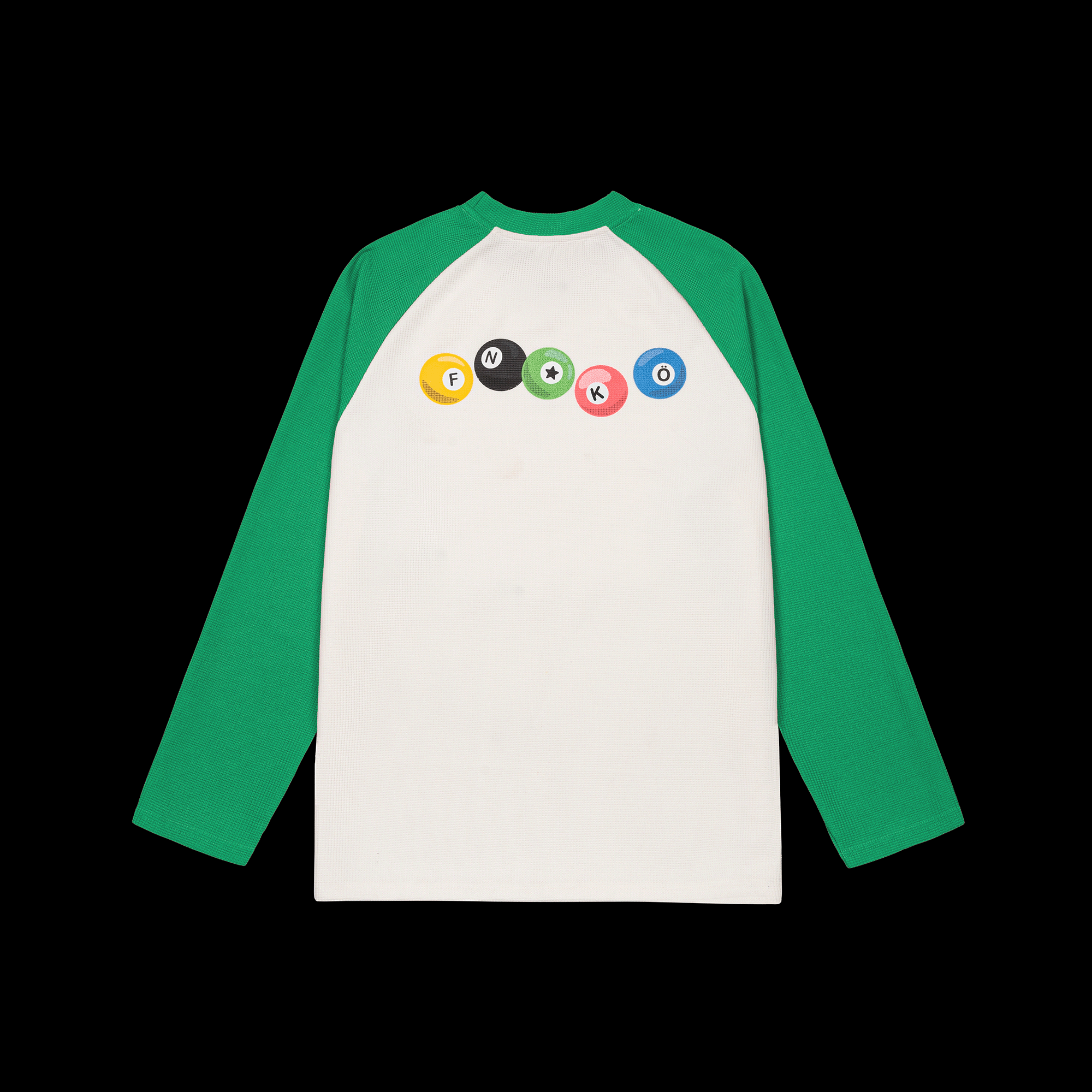 ÁO TAY DÀI RAGLAN FORM RELAXED ĐƯỢC LÀM TỪ CHẤT LIỆU COTTON WAFFLE-KNIT THOÁNG KHÍ. HOÀN THIỆN VỚI KỸ THUẬT NHUỘM PIGMENT STONEWASH TẠO HIỆU ỨNG MÀU SẮC TỰ NHIÊN NHƯ ĐÃ QUA SỬ DỤNG. THIẾT KẾ VỚI LOGO FEINICKÖ NHỎ Ở NGỰC VÀ HÌNH IN MẶT SAU LẤY CẢM HỨNG TỪ NHỮNG QUẢ BI-A NHIỀU MÀU SẮC XẾP THÀNH TÊN THƯƠNG HIỆU.