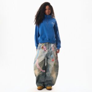ÁO KHOÁC CỔ LỬNG ĐƯỢC CẮT MAY PHOM RỘNG THOẢI MÁI VỚI DÁNG NGẮN, TAY DÀI VÀ KHÓA ZIP 1/2 PHÍA TRƯỚC. SỬ DỤNG CHẤT LIỆU COTTON 100% DỆT DÀY 440GSM VỚI CẢM GIÁC MỀM MẠI SAU KHI ĐƯỢC WASH HÓA CHẤT NHẸ. TOÀN BỘ HỌA TIẾT NGỰA CHẠY, SAO VÀ LOGO ĐỀU ĐƯỢC THÊU NỔI TINH XẢO, LẤY CẢM HỨNG TỪ NHỮNG CÂU CHUYỆN CỔ TÍCH, TẠO ĐIỂM NHẤN MẠNH MẼ CHO PHẦN LƯNG VÀ NGỰC TRƯỚC CỦA SẢN PHẨM.